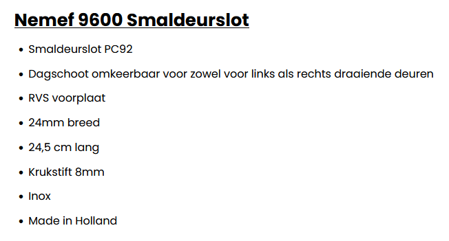nemef slot 9600 reeks - 92mm asafstand